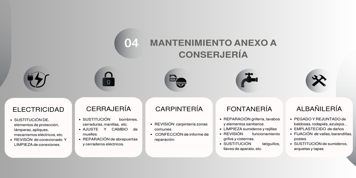 Nuestro servicio de conserjería abarca tareas de reparación y mantenimiento básico de las instalaciones. Para solicitudes más específicas, también ofrecemos la opción de contratar servicios adicionales adaptados a sus necesidades.