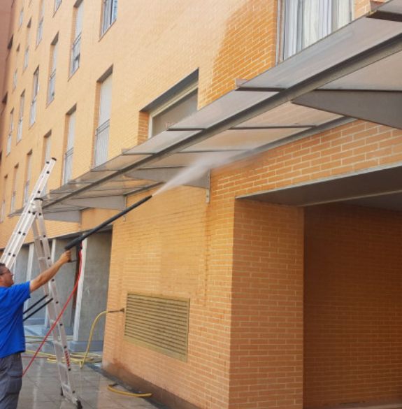 También realizamos fregado de garajes, así como la limpieza de fachadas y suelos con pistolas de agua a presión para garantizar resultados impecables.